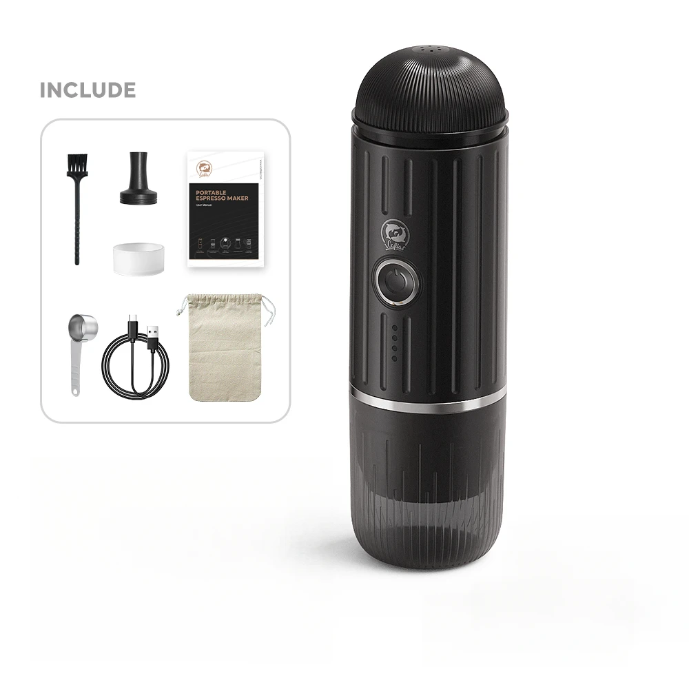 - - ماكينة اسبريسو محمولة تعمل بدون كهرباء أو عبر USB.