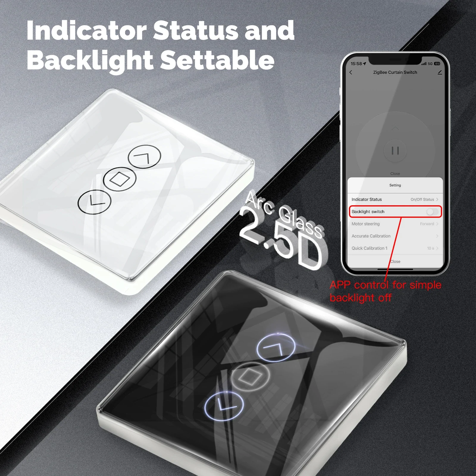 صُمم مفتاح ستارة ذكي من الزجاج ثنائي الأبعاد ويُعتبر من المفاتيح الذكية العملية التي تدعم RF433، ومن الممكن التحكم به من خلال التطبيق المتاح على الهاتف، كما أنه يدعم الأوامر الصوتية ويمكن من خلاله التحكم بكل سهولة في الستائر المختلفة مثل الستائر الرومانية، الدوارة، الفينيسية، ولكي يعمل بكفاءة لا بد وأن يقترن عمله ببوابة ZigBee لتحكم سلس وعصري.